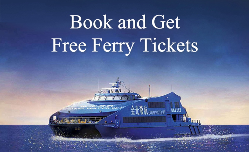 - 이 호텔 패키지의 코타이 워터제트 코타이 클래스 페리 승선권은 이용 가능한 좌석이 한정되어 있습니다. 좌석이 만석인 경우 다음 운항 일정의 코타이 클래스 페리 승선권이 제공됩니다.