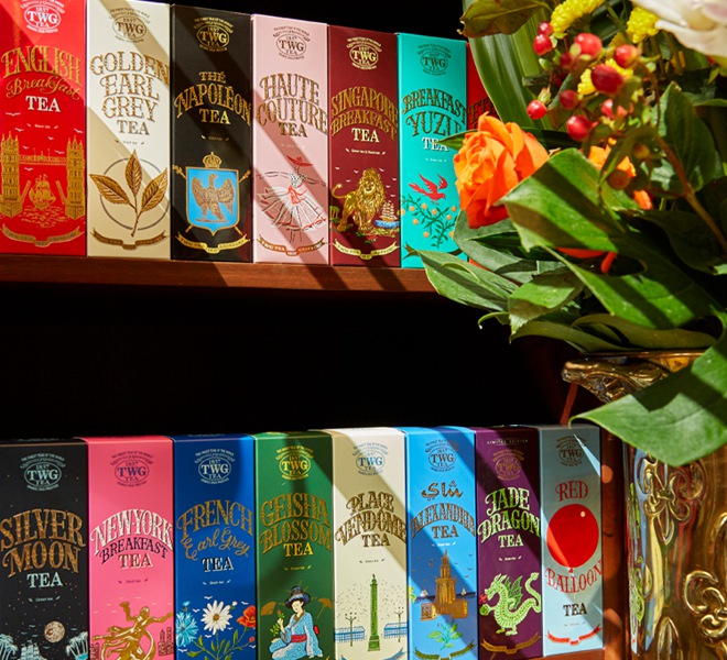 TWG Tea Boutique invites customers to the world of tea with its iconic tea wall filled with over 1000 varieties of single-estate harvests and exclusive tea blends from all around the world, a fantastical display of tea accessories, beautifully designed gift sets, and tea-infused patisseries handcrafted and prepared fresh daily for takeaway.